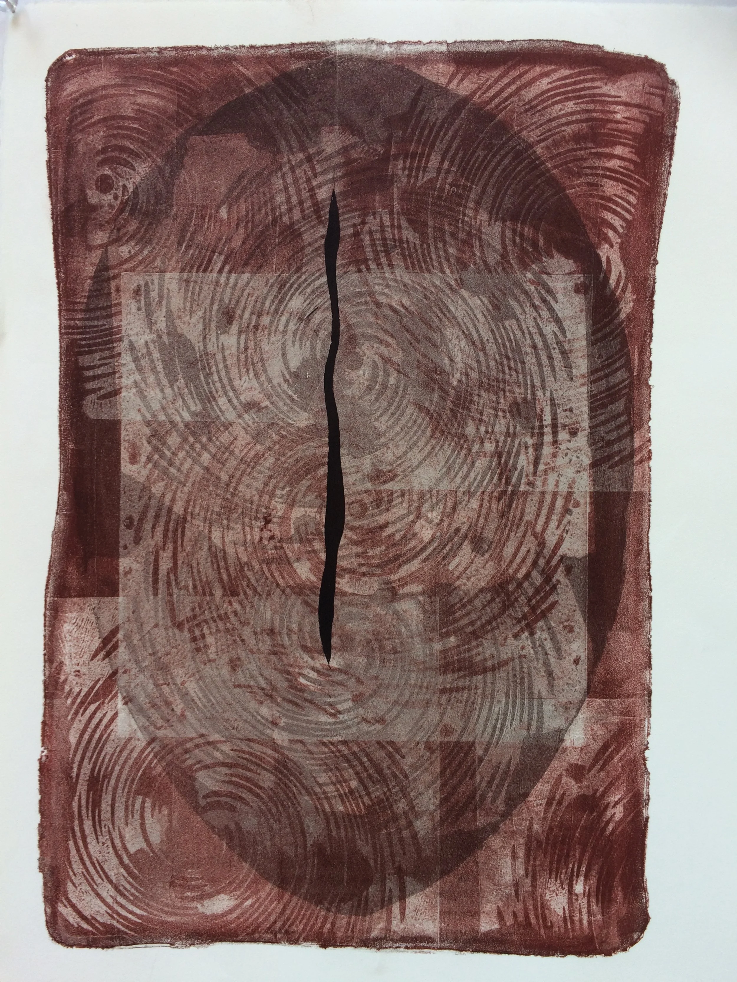 Opening, monotype on handmade gelatin plate, 12" x 17", 2017