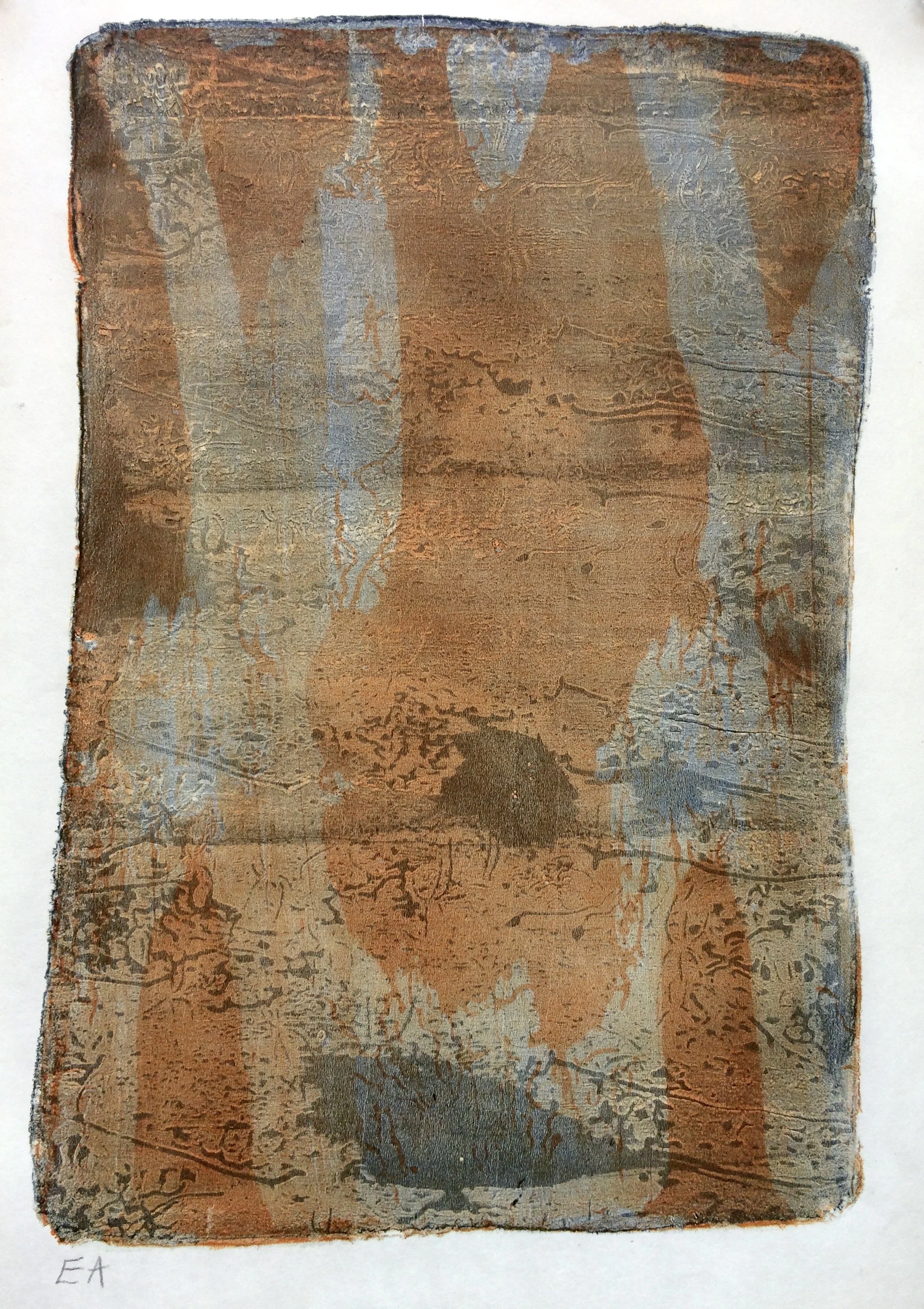 What Lies Beneath, 20" x 16", monotype on Kitakata paper, 2021